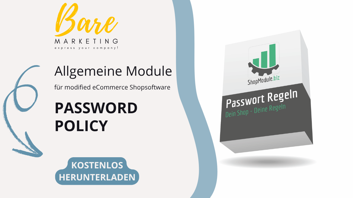 Jeder Betreiber einer Shopsoftware, jeder Kunde und auch jede Zertifizierungsstelle haben unterschiedliche Auffassungen von “sicher” und definieren die Regeln für die Passwörter selbst. Mit diesem Modul kannst du es für deinen modified Shop mit wenigen Klicks selbst tun.